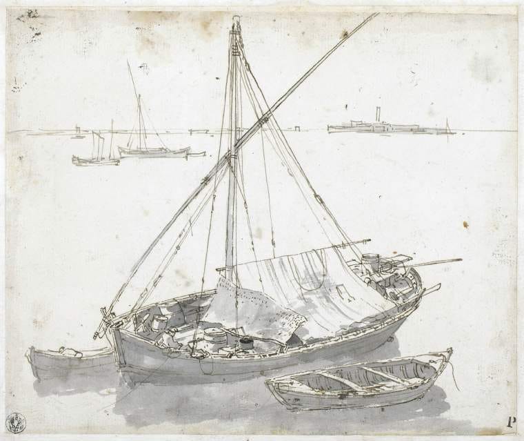 Stylistically our drawing may be compared to several of the Fitzwilliam drawings, including a Lagoon Scene (see fig.) and the Lateen Rigged Ship in a Port (see fig.).7