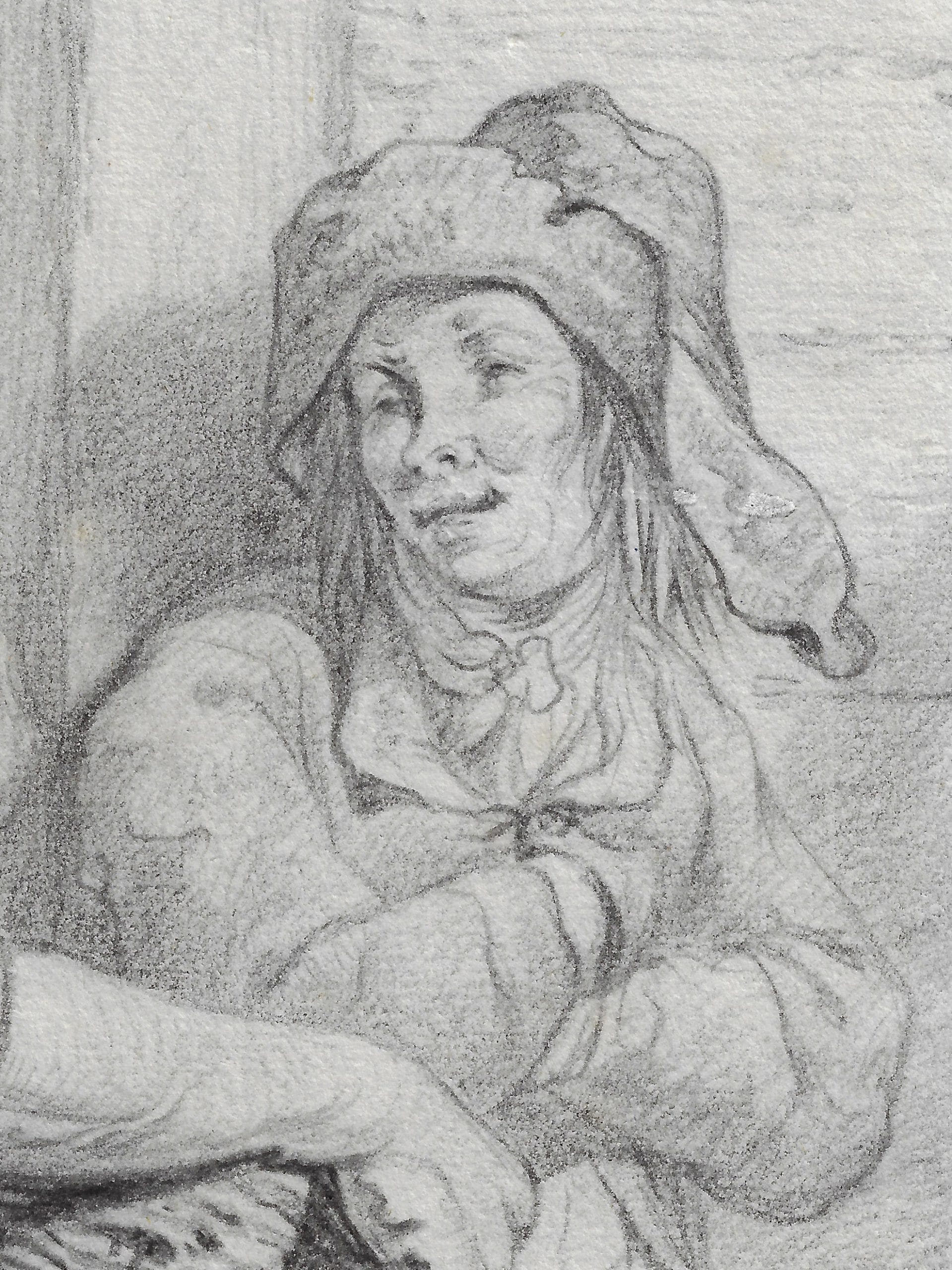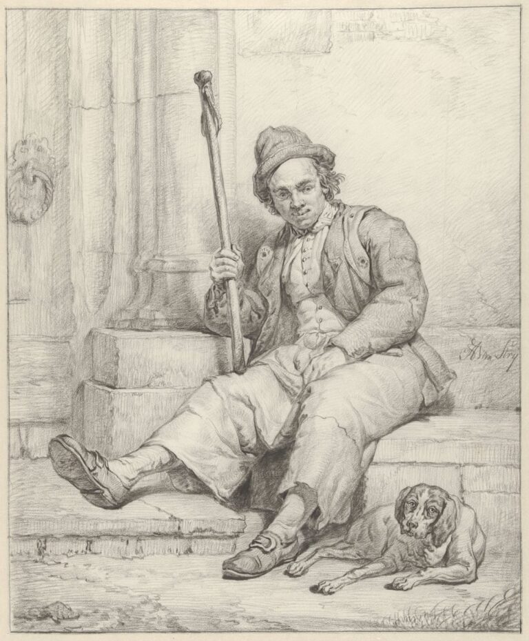 Among Van Strij’s most sensitive and accomplished sheets are those executed exclusively in black chalk, like the present work. Our drawing can for instance be compared to the Seated Man with Dog in the Rijksprentenkabinet (fig.), which is dated by Te Rijdt circa 1795-1800,4 and which serves as the frontispiece to the chapter on Van Strij’s drawings in the catalogue accompanying the exhibition held in the Dordrechts Museum and the Rijksmuseum Twenthe in 2000. Our sheet is likely to date from the same period, just before the turn of the century. The handling of the chalk, the various directions of hatching and the soft sfumato effects that the artist was able to achieve are highly comparable. It is known from autograph inscriptions that Van Strij frequently drew from models in the drawing academy Pictura, and it is possible that the present large and striking drawing was also made there.