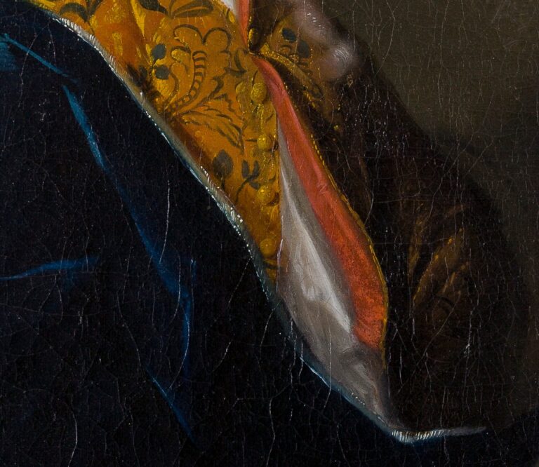 The loose handling of the brush in this work, especially in the embroidered waistcoat, is particularly noteworthy and more reminiscent of the best painters of the seventeenth century, rather than that of his own times. The present canvas can be compared to a portrait of an unknown gentleman in the collection of the Rijksmuseum in Amsterdam, dated 1723 (fig.).3
