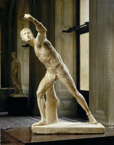 3. More properly identified as Agasias of Ephesus, son of Dositheus, also often referred to as the Fighting Warrior or Borghese Gladiator; the best known version of this famous sculpture is in the Louvre, c. 100 B.C.E. (purchased 1807).