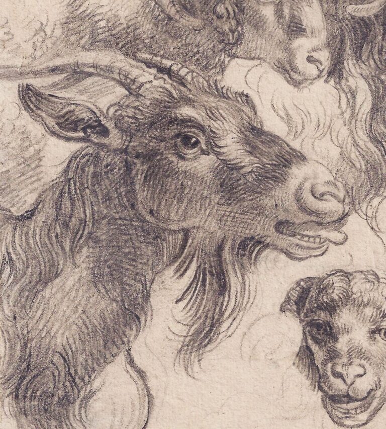 A group of 61 paintings by Londonio is preserved in the Pinacoteca di Brera, Milan, donated by his grandson Carlo Londonio in 1836. The Biblioteca Ambrosiana in Milan furthermore holds some 250 drawings and oil sketches by the artist, including a comparable oil sketch with studies of goats’ heads (fig.).4 Studies such as our brilliantly observed drawing and the Ambrosiana oil were generally made from life, and kept in the artist’s studio as part of a visual repertoire of motifs to be used in finished works.