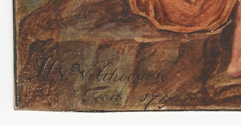 Hendrik van Velthoven was born in Leiden, where he was educated at the Drawing Academy.1 He was registered in the annals of Leiden University on 10th December 1745 as ‘Batavus Pictor’, ‘painter of Leiden’, and was then living with his father on the Hogewoerd street. On 5th September 1753 he became a master at the Guild of St Luke in that city.2 In 1761 he was the first drawing master appointed at the Fundatie van Renswoude (Foundation of Renswoude) in Utrecht, where he spent the remainder of his life. Among his pupils was Louis François Gérard van der Puyl (1750–1824), who spent five years with Velthoven.