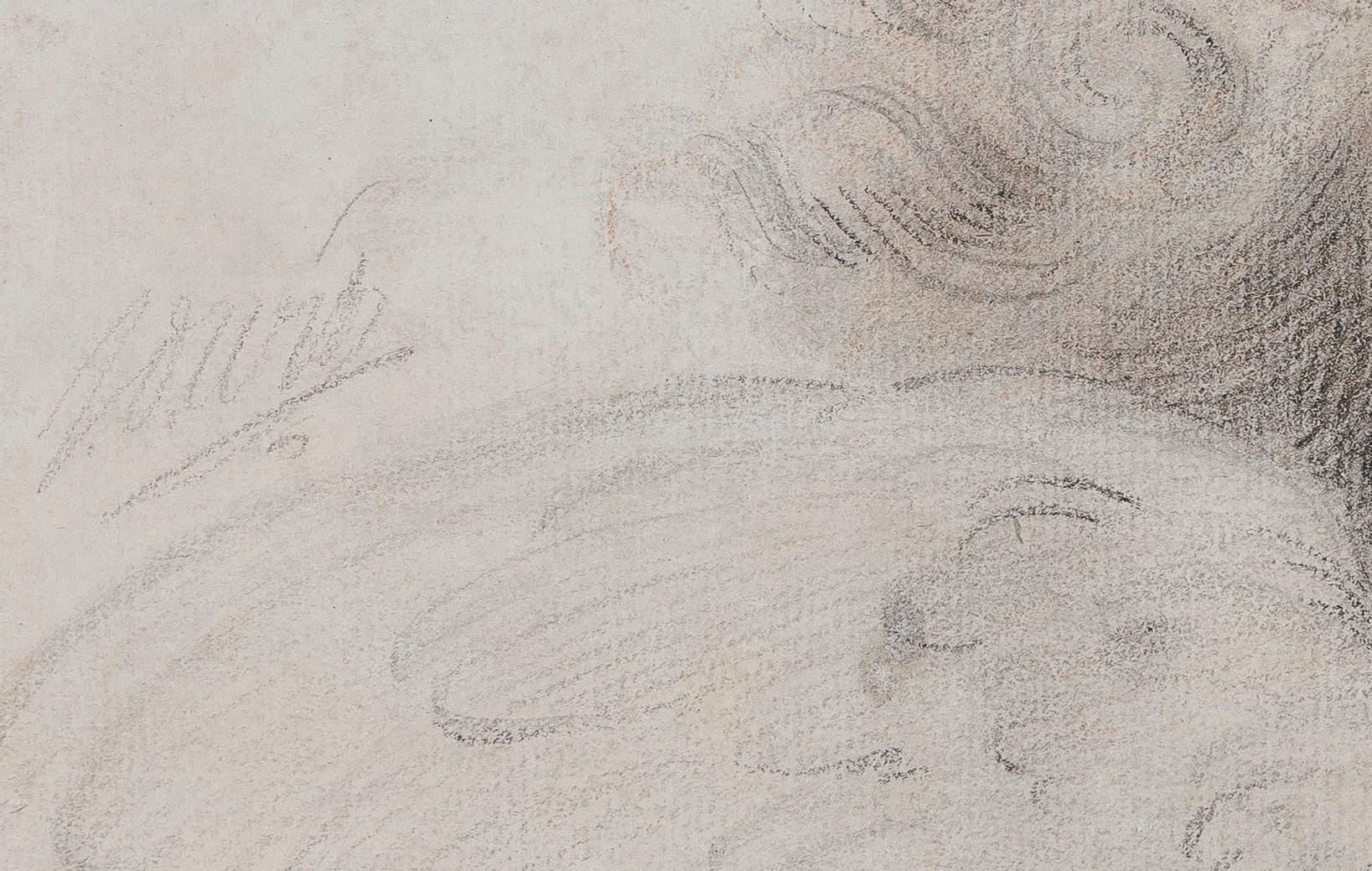 Black, white, blue and red chalk, black ink framing lines, watermark ‘Beauvais’, 307 x 413 mm (12.1 x 16.3 inch)