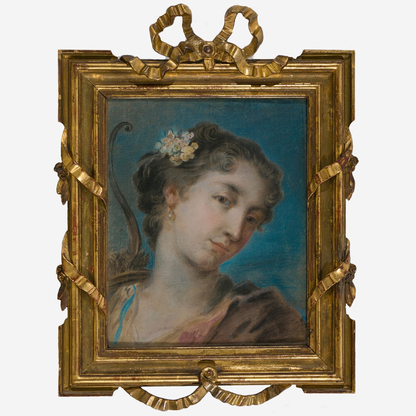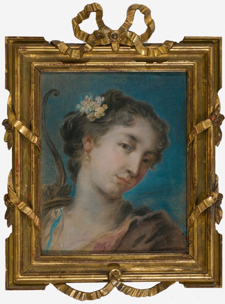 As noted by Wandelaar on the original support panels of these pastels, the present pair of charming allegorical representations (or possibly actual portraits), was copied after the celebrated Venetian female pastellist Rosalba Carriera (1675–1757).3 Her works were actively collected by illustrious and mostly aristocratic English, German and French Grand Tour travellers, but little to nothing is known about her works in eighteenth-century Dutch collections. She is known to have made a portrait of the diplomat Willem Bentinck (1704–1774), as the sitter wrote about the sittings and transport of his portrait in his letters to family members – the portrait itself is sadly lost.4 The originals of Wandelaar’s pastels are no longer known either, though a related composition by Rosalba of one of the pastels is known, an allegorical representation, possibly of Spring (fig.).5