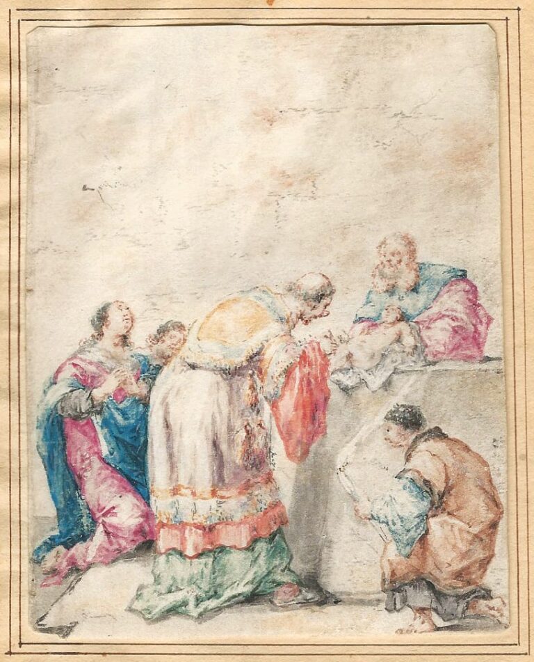 The Circumcision was a subject that was particularly beloved by Bramer, who depicted it many times. A comparable yet larger drawing of the same subject is preserved in the Metropolitan Museum in New York, although the colours in the New York sheet have not survived as freshly as those in our drawing, which is likely to have been preserved in a collector’s album (fig.).4 Another Circumcision by the artist is preserved in the Groninger Museum.5