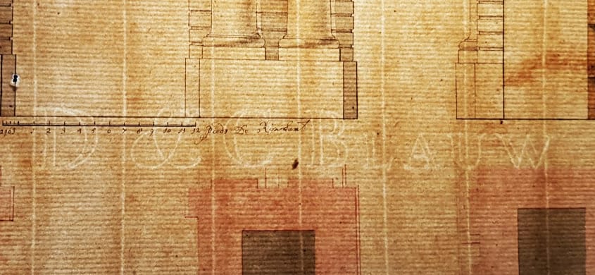 Inscribed ‘Pieds De Rynlant’ (pen and black ink, underneath the main elevation)