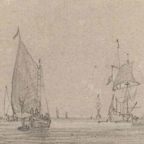The present drawing is a good example of De Vlieger’s rare marine drawings.2 The swift and assured touch creates the impression that the scene was drawn from life.